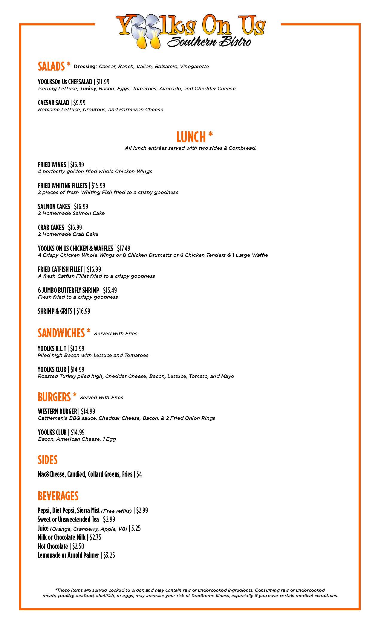 Come hungry. Leave happy. Brunch with us at Yoolks on US.